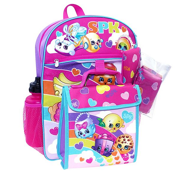 Uncategorized Shopkins Backpack And Lunchbox Set This set which includes three exclusive shopkins which all fit inside the lunchbox also comes with a stackable sandwich a magic spoon and a fruit cup treat